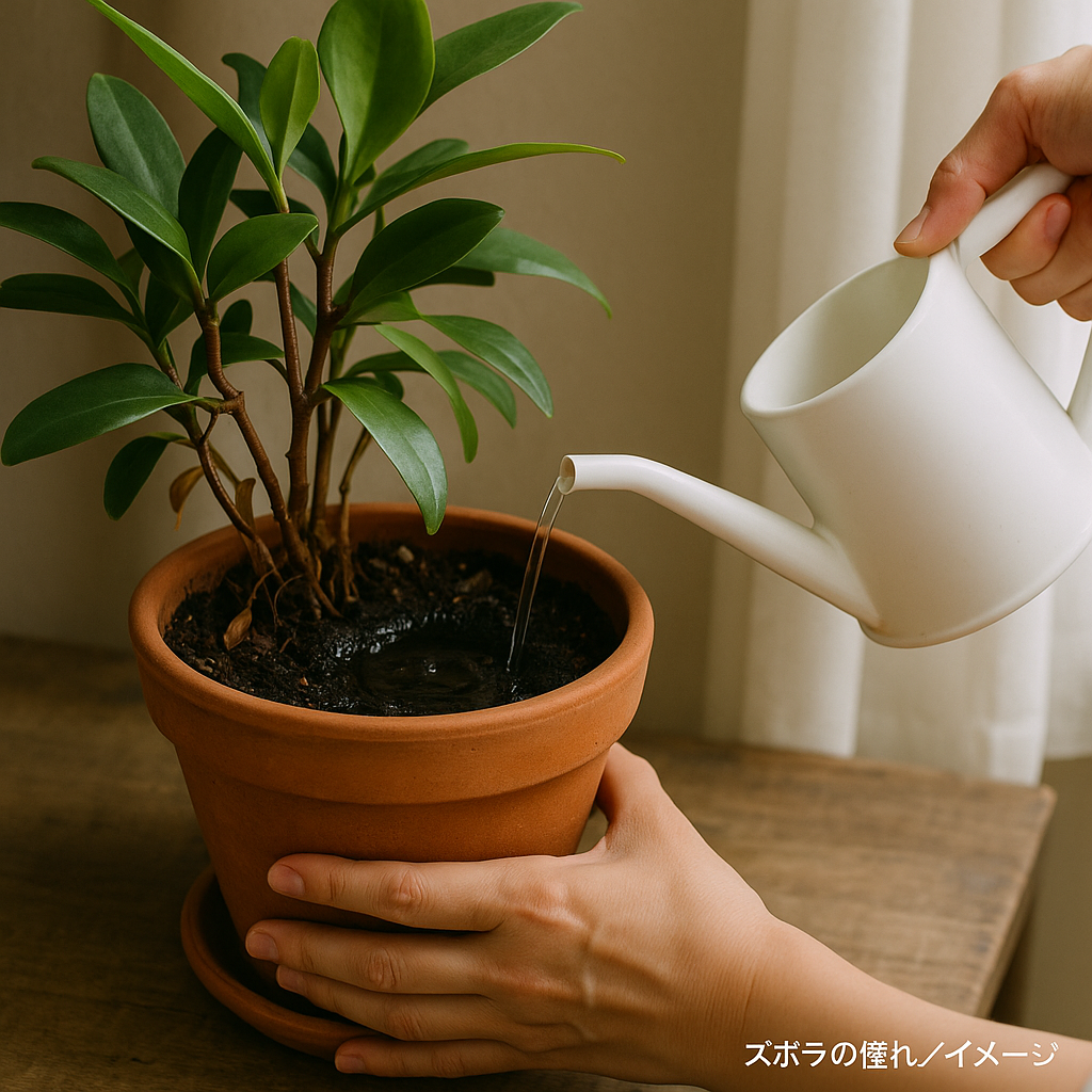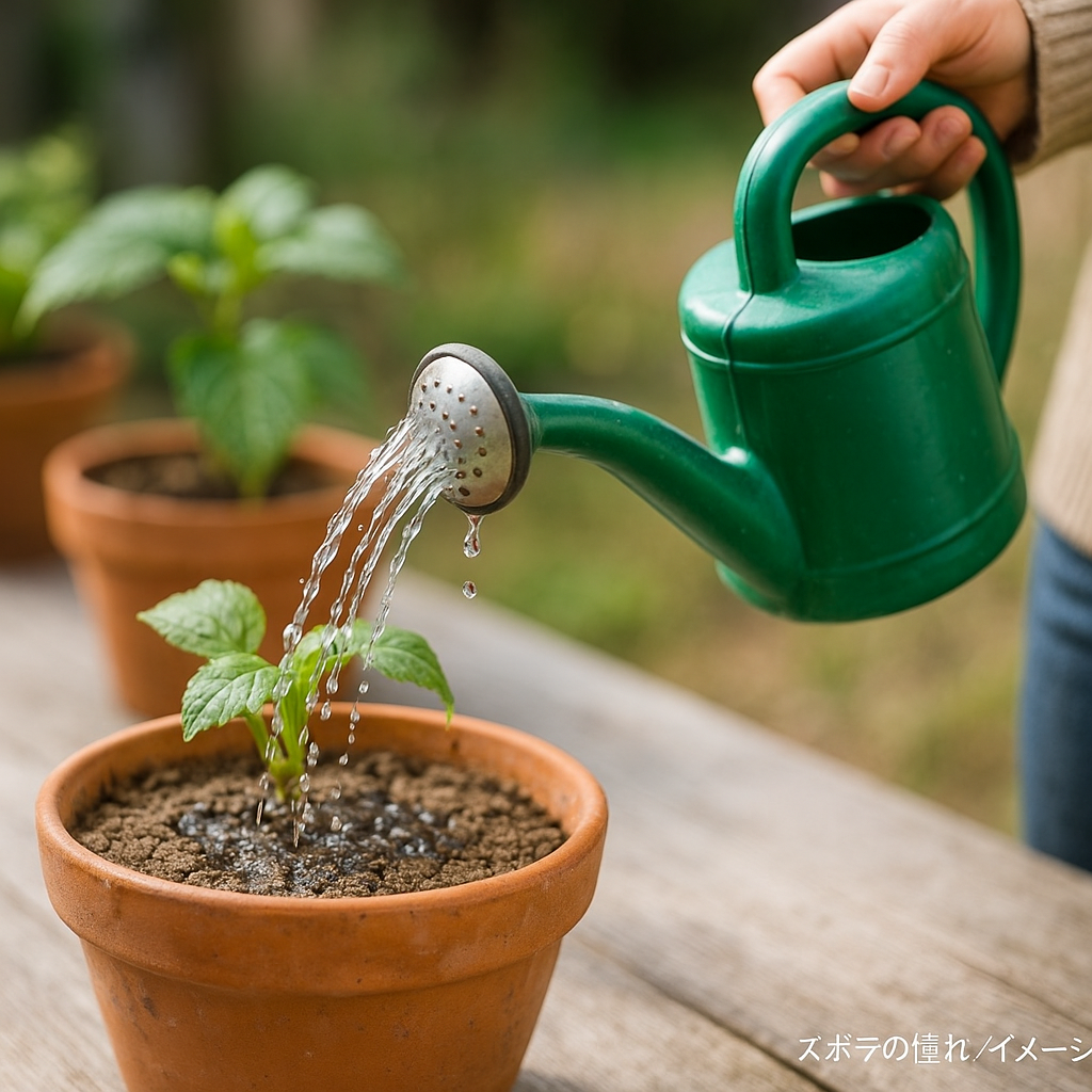 鉢植えの水やりのコツは土の表面が乾いたら、鉢底から水が流れ出るまでたっぷりと与えることです。