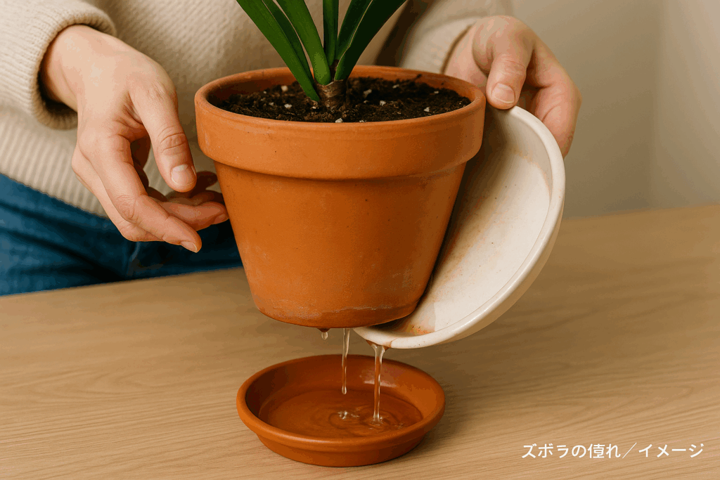 水やり後受け皿にたまった水は根腐れの原因になるため必ず捨てるようにしましょう。