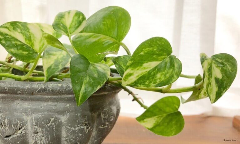 つる性のポトスは、育て方しだいで棚に垂らしたり吊るしたりできる観葉植物です。
