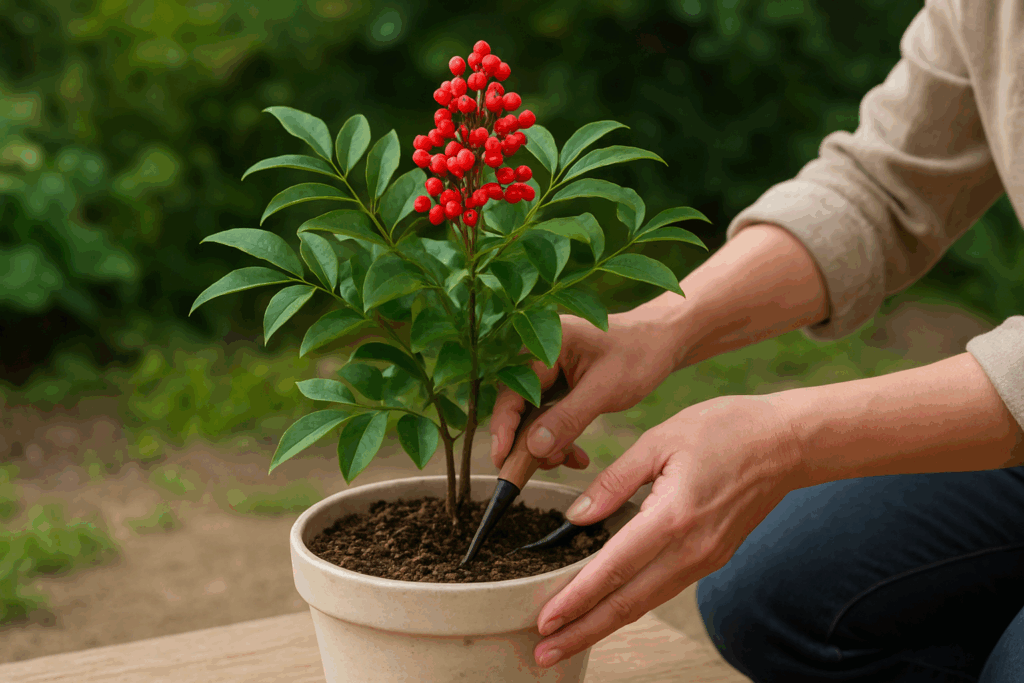 南天の鉢植えの植え替えは、一般に春(3月〜4月)が最も適した時期です。