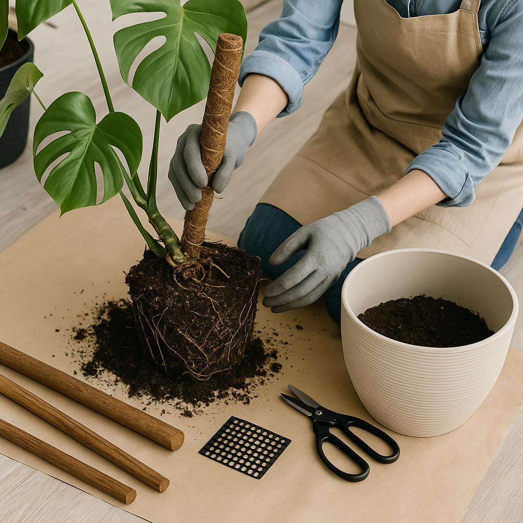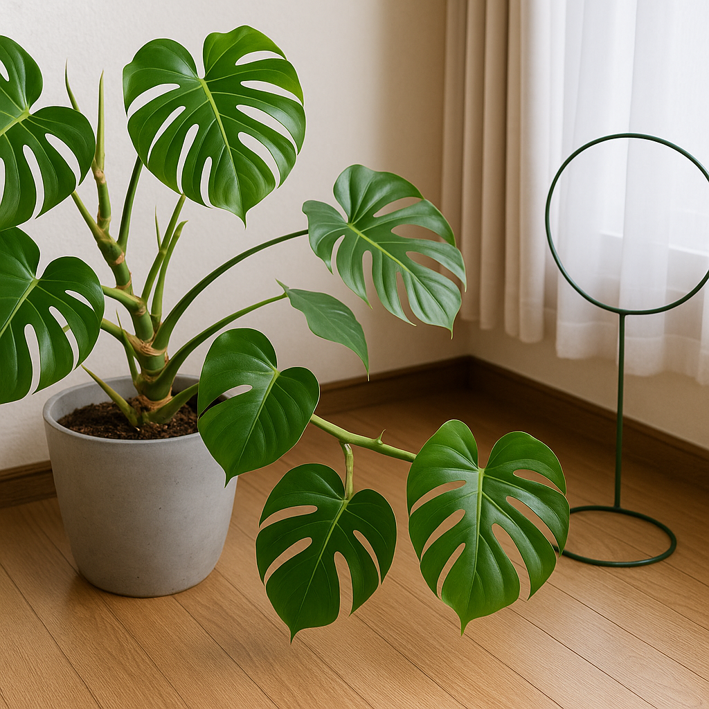 これらのポイントを押さえて支柱を設置すれば、横に広がるモンステラでも自然で立体的な姿を保ちつつ、美しいシルエットを長期間維持できます。