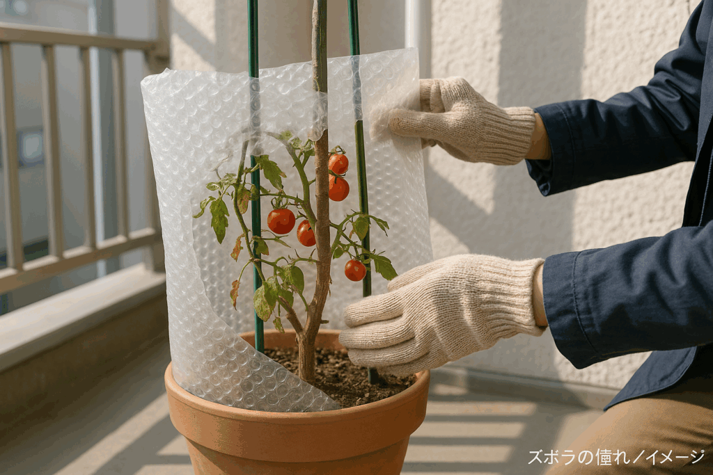 - プランターは断熱材の上に置き、夜間は壁際や室外機の風が当たらない場所へ移動