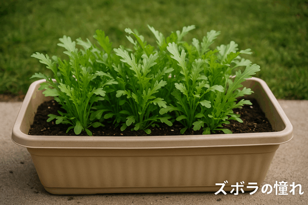 春菊は環境に合わせて柔軟に育てられる万能野菜。とくに都市部のベランダ栽培や、時間が取れない方のプチ菜園にも向いています。定期的にチェックしつつも、基本は手間いらずのズボラ栽培が可能です。
