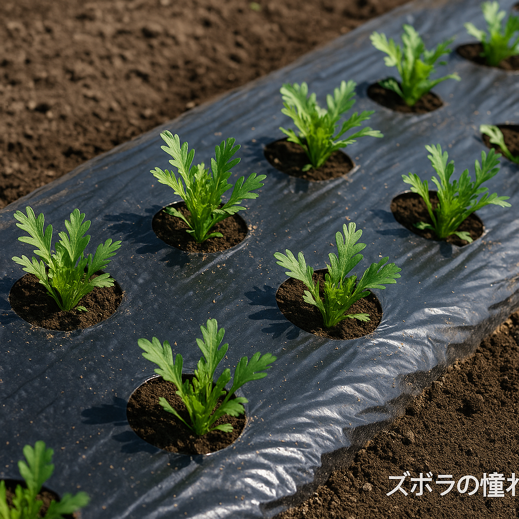露地栽培でもズボラさんが続けやすい工夫としては「直播き+マルチ」の組み合わせが便利です。黒マルチで雑草を抑え、地温も保てるので発芽も安定します。