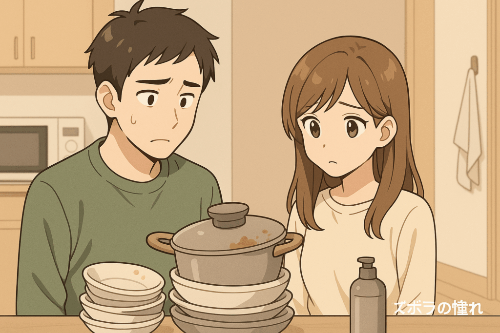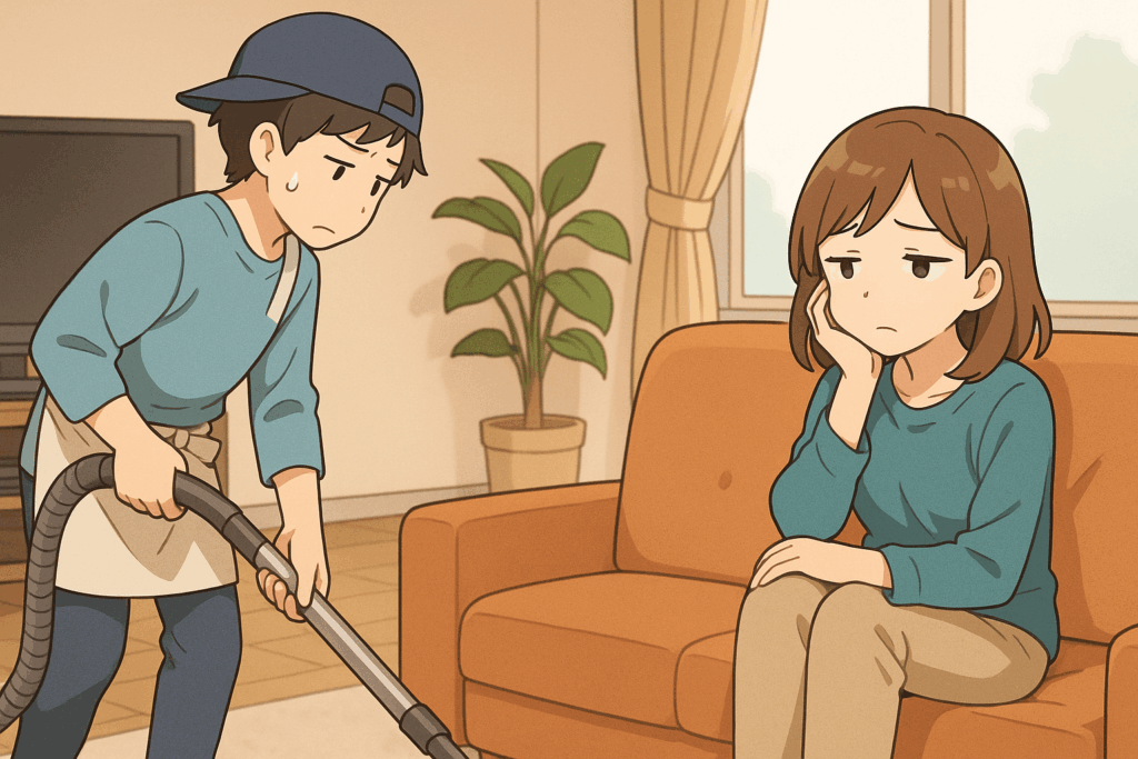 洗ったはずの食器に油膜が残っていて翌朝また洗い直し。洗濯物を取り込んでくれたのはいいけれど、シワが残っていてアイロンがけが倍増。掃除機をかけてくれたけど、排水口や隅っこがそのままで「あとで自分がやるしかない」とため息が出る。こうした「やってくれたのに助からない」状態が、いわゆる二度手間の正体です。
