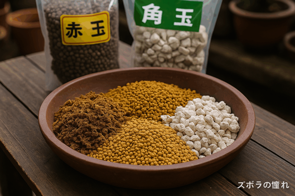 基本は赤玉土小粒6:鹿沼土2:腐葉土2。赤玉で骨格を作り、鹿沼で酸性寄りと通気を、腐葉土で保肥と微生物環境を整えます。