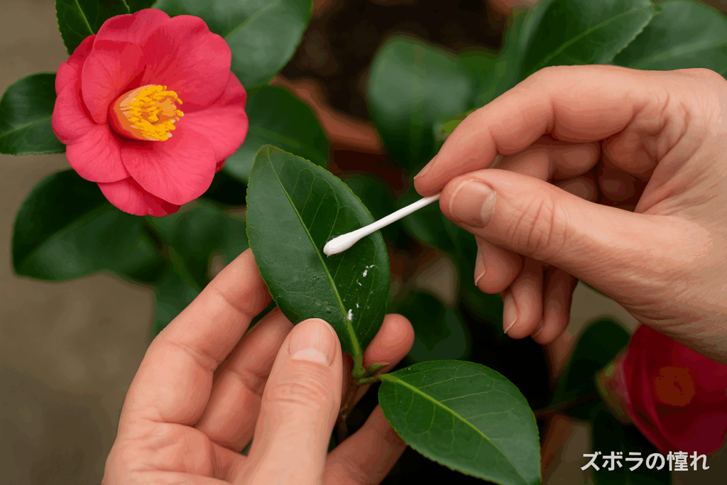 発見初期なら、患部の葉・花を取り除き、剪定で枝の混みを取れば多くは持ち直します。害虫はアブラムシ(春先の新芽に群生)、カイガラムシ(幹や葉裏に固着して吸汁)、チャドクガ幼虫(強い皮膚刺激)など。アブラムシは強めのシャワーや牛乳スプレーで初期対応、カイガラムシは歯ブラシや綿棒+アルコールで物理除去が効きます。