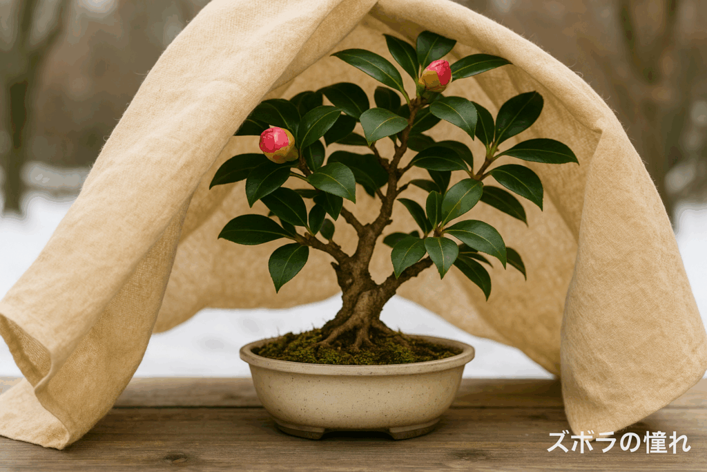 鉢を地面から浮かせると凍み上がり防止になり、断熱材代わりに発泡ブロックやすのこを活用できます。寒波が来る日は、不織布や寒冷紗でふんわり覆い、風の直撃を回避しましょう。