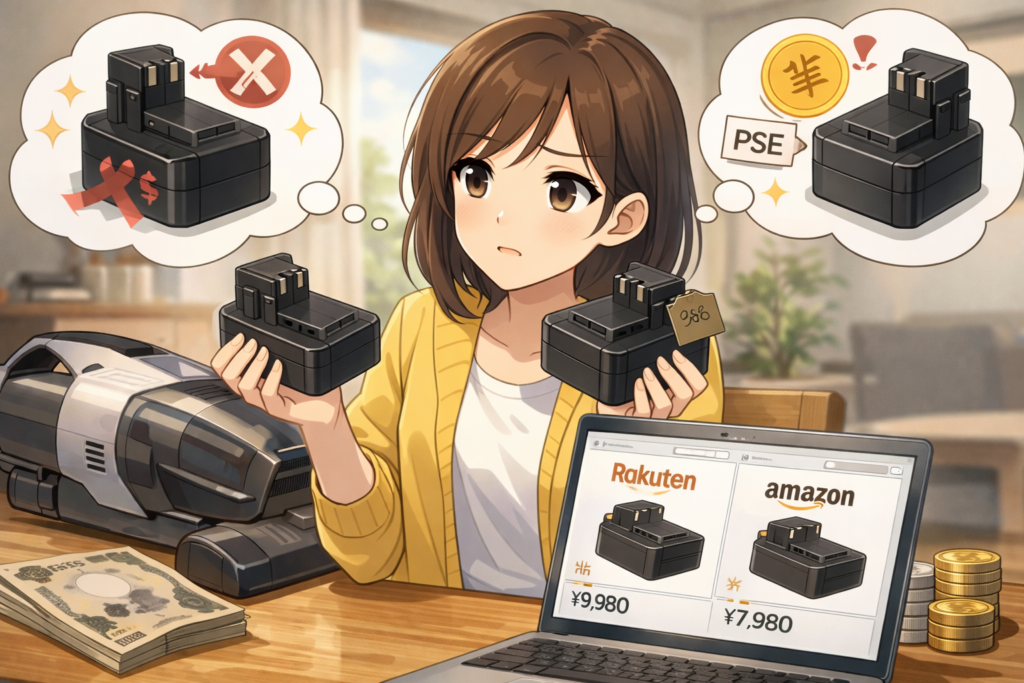 ただし、ここは慎重に。互換は当たり外れが出やすいので、私は「安い=正義」だけで突っ込むのはおすすめしません。最低でも適合機種の明記、PSE表示、保証の有無はチェックしたいところです。
