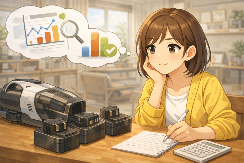 まずは、日立掃除機のバッテリー交換費用が「どこで・何を・どうやって」交換するかで変わるところを、ズボラ目線でスッキリ整理します。結論、迷いやすいのは純正か互換か、修理に出すか自分でやるか、ここだけです。