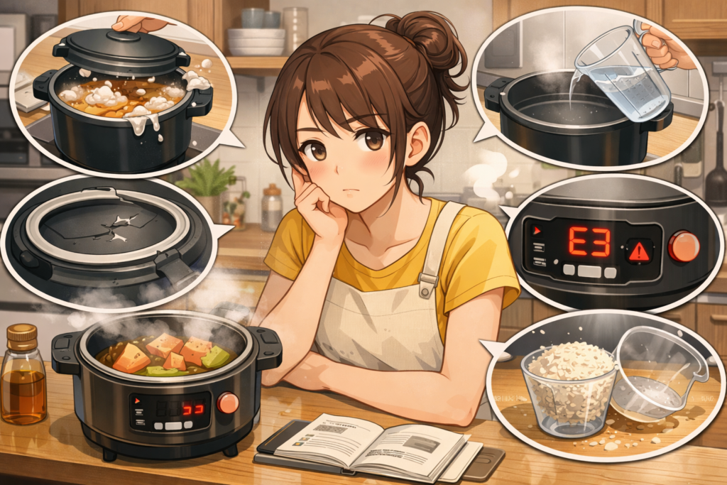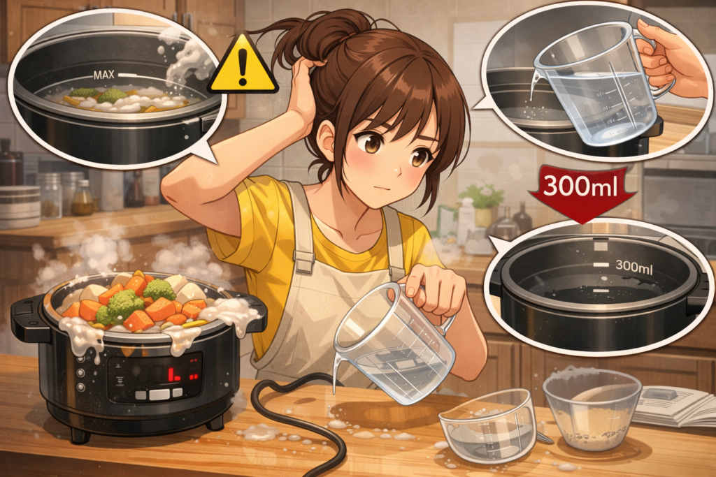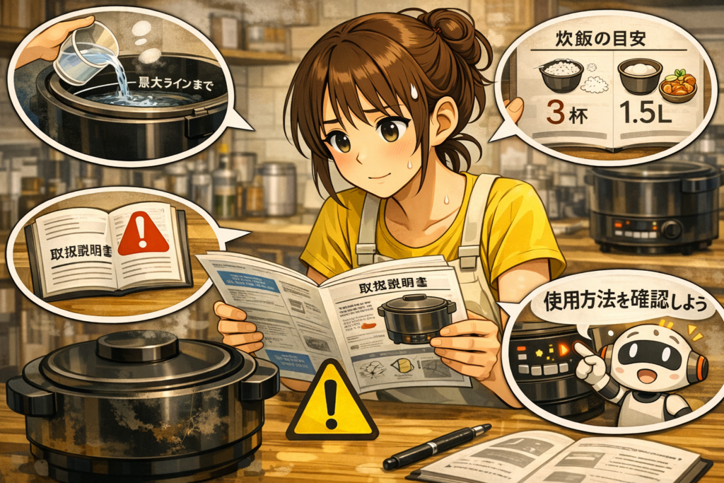 まずは焦らず「分量・フタ・冷却」の3点を確認するだけで解決することが多いです。