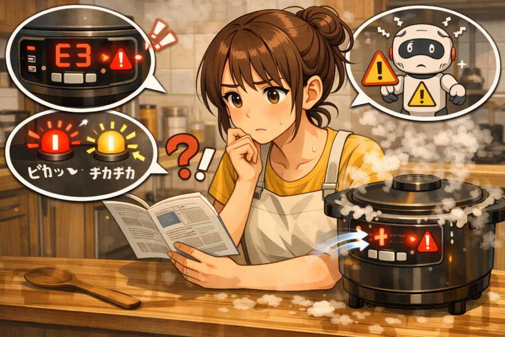 レコルト自動調理ポットが途中で止まるとき「これって故障?」「ランプが点滅して動かないけど大丈夫?」と不安になりますよね。