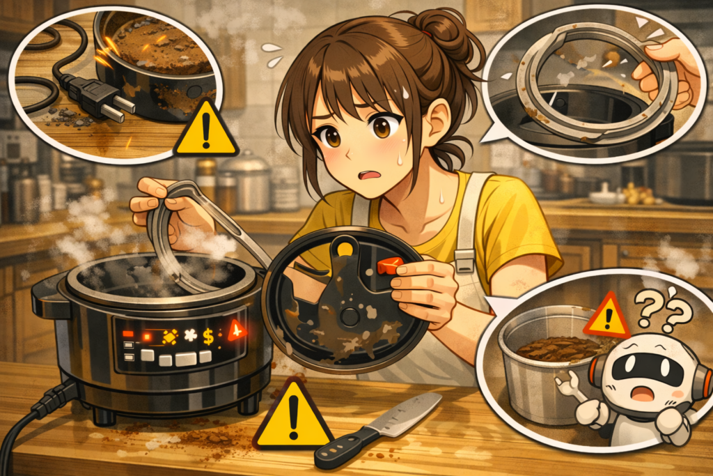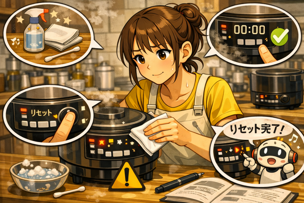 もしお手入れ以外にも「焦げる」「止まる」「フタが開かない」などの症状がある場合は、 原因別の記事も参考になります。