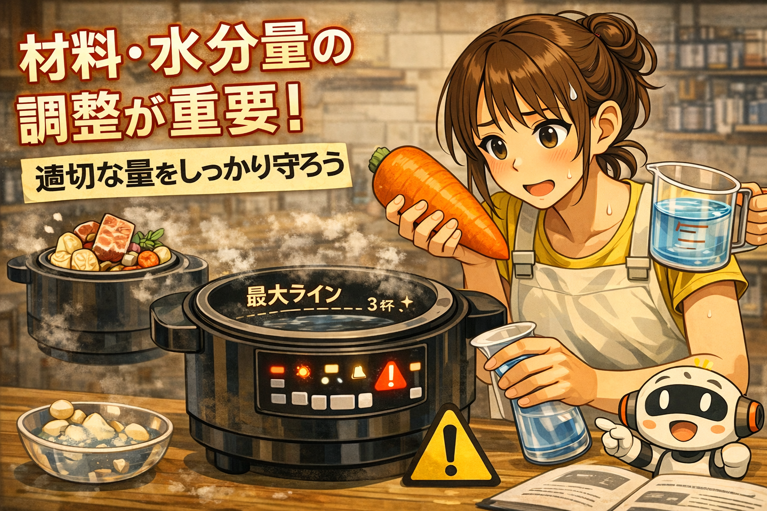 まずは焦らず「分量・フタ・冷却」の3点を確認するだけで解決することが多いです。