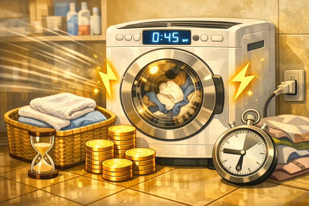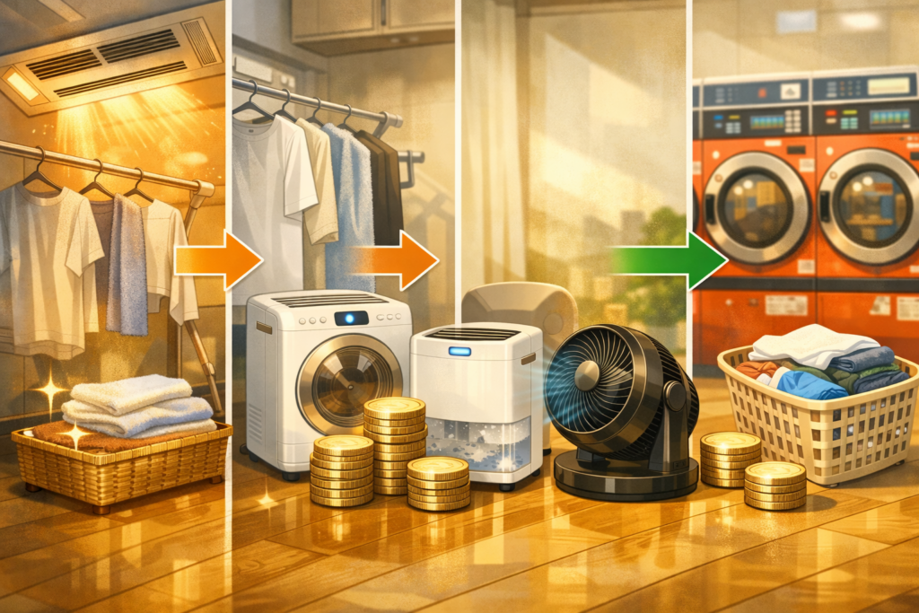 • 衣類乾燥機は1回約80〜150円で時短と安定性が強い