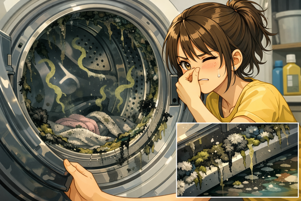 意外と見落としがちなのが、洗濯槽のカビや汚れ。洗濯機って、見えないところに洗剤カスや皮脂汚れがたまりやすいので、そこにカビや雑菌が住み着きやすいんです。