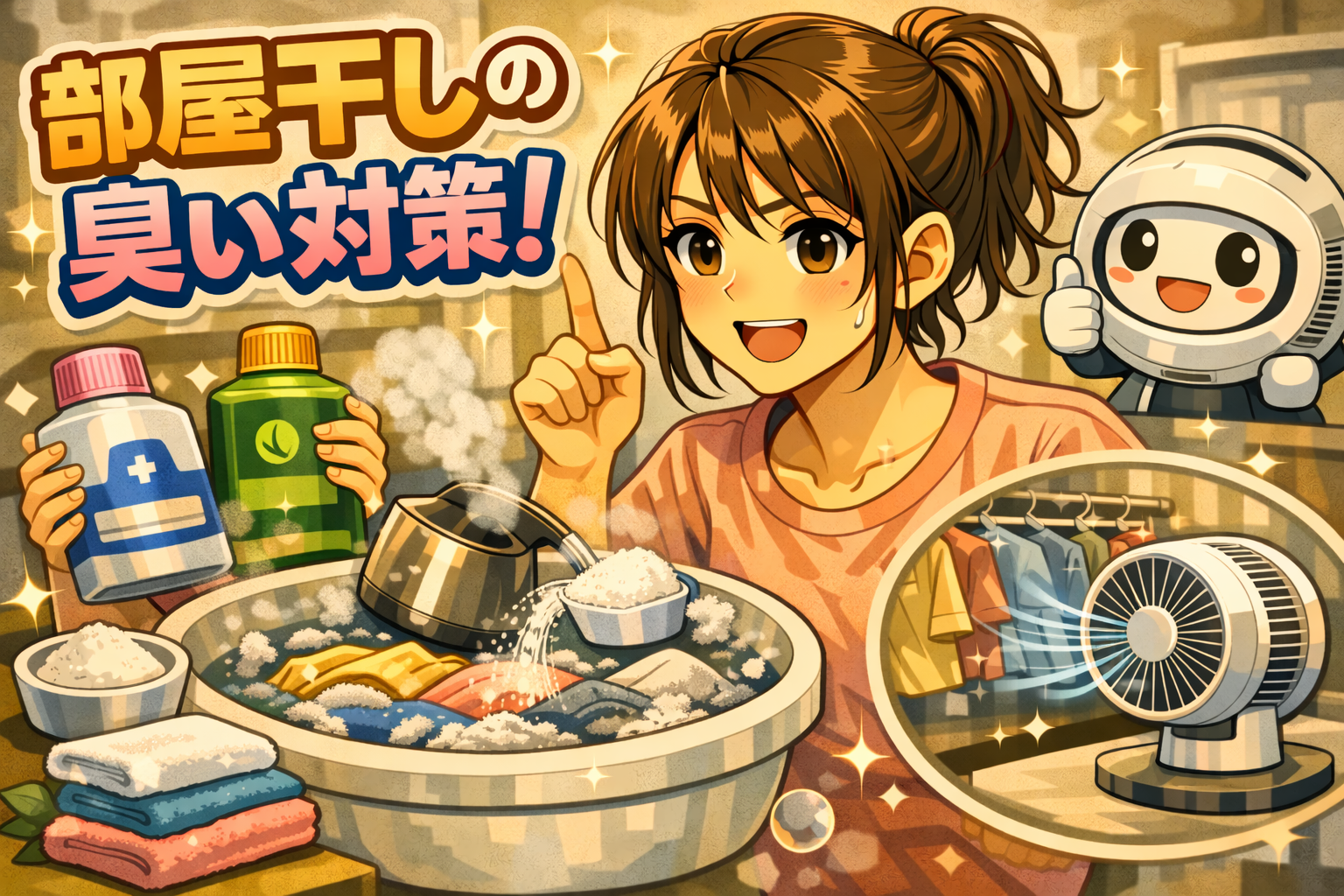 部屋干しの臭いが取れないと、ほんとテンション下がりますよね。せっかく洗ったのに生乾き臭が残る、タオルがモラクセラ菌っぽいニオイになる、洗い直しても取り方が分からない…そんなモヤモヤ、すごく分かります。