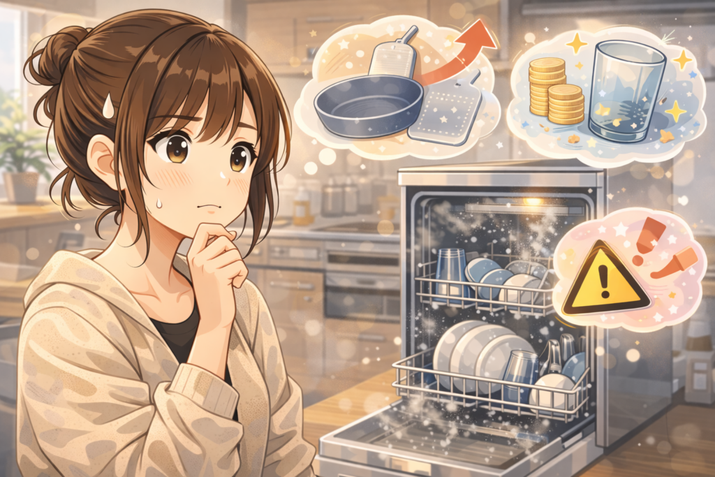 実はこれ、全部かつての私の心配事です。でもご安心を。食洗機を導入した今、そんな不安は吹き飛び、毎日の家事ストレスが劇的に減りました。