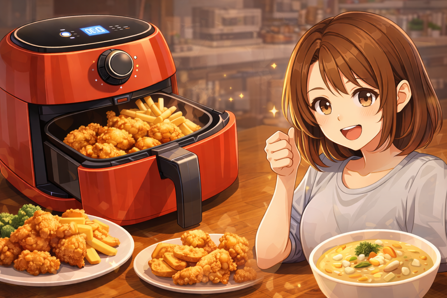 ズボラ目線の使い分け:週に1回でも揚げ物を食べるなら、エアオーブンの満足度は上がりやすいです。逆に揚げ物をほぼ食べないなら、良さを活かしきれないかも。