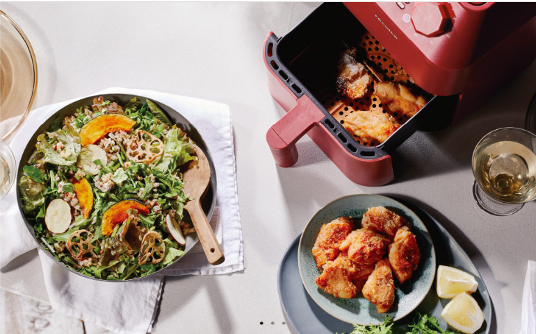 油をほとんど使わず、揚げ物風に仕上げられる家電です。