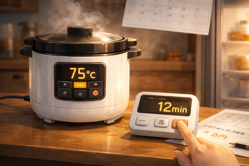 注意:保温の時間や温度は環境で変わります。食中毒予防の観点でも、長時間の保温での保存を前提にしないほうが安心です。最終的には取扱説明書や公式情報をご確認ください。