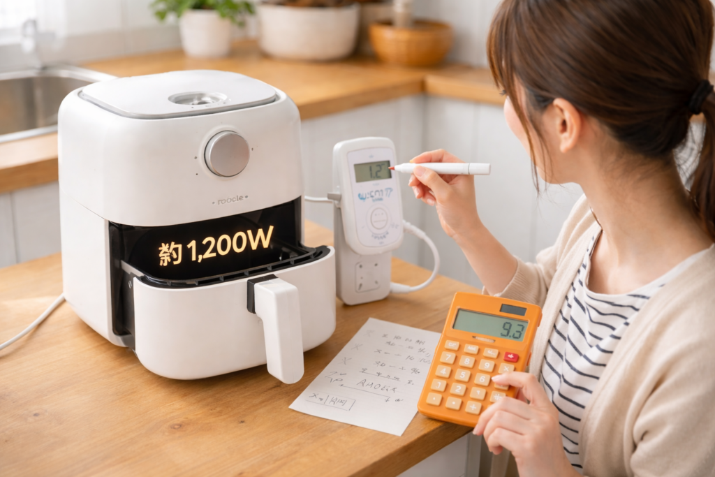 ノンフライヤーは他社も含めて、消費電力が1000〜1500Wあたりに集まりがちです。だから、電気代だけで決めようとすると、正直どれも大差が出にくいです。