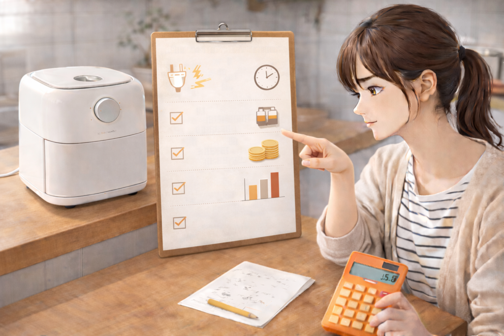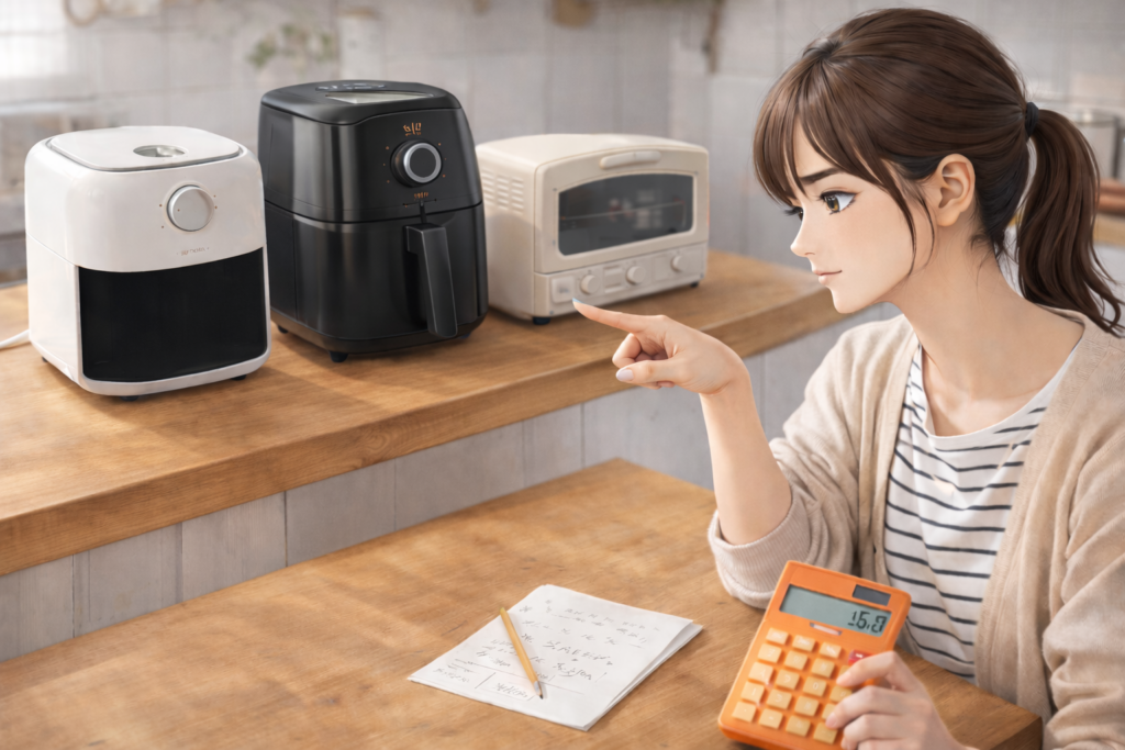 私が比較で見るポイントは、電気代よりも「あなたの家で使う頻度が上がるか」です。使う頻度が上がる家電は、結果的に外食や惣菜の回数が減って、トータルの家計がラクになることもあります。