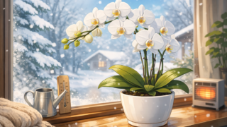 胡蝶蘭の冬の管理で悩む方へ。適温、置き場所、水やり頻度、湿度、保温のコツをわかりやすく解説。胡蝶蘭の冬の管理で失敗しやすい根腐れや葉のしわしわ対策、肥料や植え替えを控える理由、ズボラでも続けやすい冬越しのポイントまでしっかりやさしくわかります。